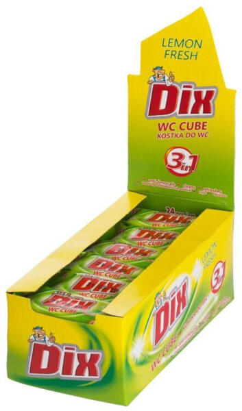 Dix WC Kocka Citrom Illattal - 35g: Frissesség és tisztaság a fürdőszobában ? Ez a Dix WC kocka hatékonyan tisztítja és felfrissíti a WC-t, kellemes citromos illattal. Könnyen használható, és a mindennapi tisztítás tökéletes segítője. Előnyök: ? Hatékonyan távolítja el a szennyeződéseket: A WC mindig ragyogóan tiszta lesz. ? Frissítő citrom illat: Kellemes illatot áraszt a fürdőszobában. ✨ Könnyű használat: Egyszerűen helyezze a WC-be, és élvezze a frissességet. ⏱️ Időt takarít meg: Gyors és egyszerű tisztítás. A Dix WC kocka ideális megoldás a WC tisztaságának és frissességének fenntartásához. Próbálja ki Ön is!