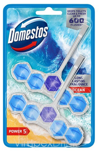 A Domestos Power5 WC frissítő blokkja segít megelőzni a koszt és a vízkőlerakódásokat a takarítások között is. Minden egyes öblítés után bőséges habot hagy maga után, amely segít megakadályozni a vízkőlerakódást, eltüntetni a koszt, és ragyogóvá tenni a WC kagylót, amely hosszan tartó kellemes illatot áraszt magából.