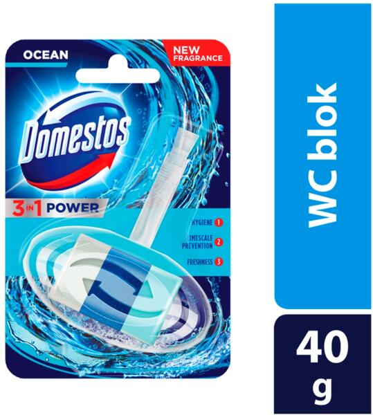 A Domestos 3 az 1-ben WC-tisztító blokkok három speciális rétegből állnak, és három hatást egyesítenek. Megszüntetik a baktériumok szaporodásának környezetét. Megakadályozzák a vízkőképződést. Az illatosított gélcsík tartalmának köszönhetően minden öblítés után hosszan tartó friss illatot hagynak maguk után. Ezenkívül a Domestos öblítőblokkok intenzívebb illatot, kifejezettebb habzást és teljes higiénikus tisztaságot biztosítanak minden öblítés után. Használati utasítás: