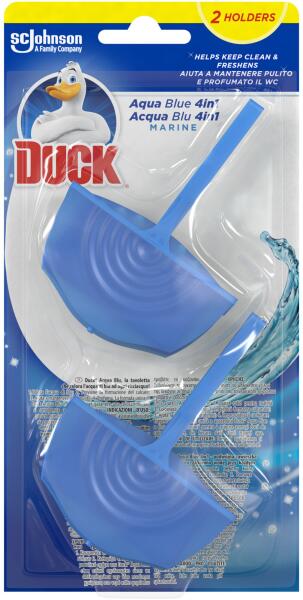 Duck 4 az 1-ben WC-frissítő, Akvamarin kék, 2x36g WC-frissítő Double Device 4in1 Duck Aqua Blue 2x36g;WC-készülék, amely kékre színezi a vizet, és emellett 4 az 1-ben akcióval rendelkezik;Vízkőoldó, tisztítja, frissíti és színezi a vizet;Egyedülálló formáját kifejezetten úgy alakították ki, hogy minden egyes vízsugárral biztosítsa a színadagot.
