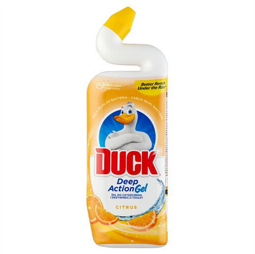 A Duck kacsa egy hatékony fertőtlenítő WC-tisztító gél , melynek citrus illata frissességet kölcsönöz. Tulajdonságok:
