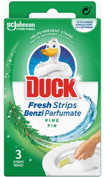 Duck Pine zselés wc öblítő csík, 3 csík Duck egy WC-tisztító termékcsalád azok számára, akik könnyedén és időmegtakarítás mellett szeretnének tiszta WC-t. p>A Duck kiváló megoldásokat kínál a mindennapi takarításhoz, ötvözve a tisztító hatékonyságot a kellemes illatokkal. A WC-t egyszerűbb és higiénikusabb módon lehet tisztítani és illatosítani, anélkül, hogy meg kellene érinteni a baktériumokkal teli műanyag fedelet. Könnyen alkalmazható illatos csíkok a WC tisztításához és frissítéséhez, 5 az 1-ben hatással:1. Megakadályozza a baktériumokat tároló vízkő kialakulását. Aktív habbal tisztít. 3. Hosszantartó fény a WC-csészében. 4. Folyamatos illat. 5. Akár 4 hétig tartó frissesség. A Duck illatos csíkok összetétele védőréteget képez a WC-csésze teljes felületén, segítve a vízkő elleni küzdelmet.