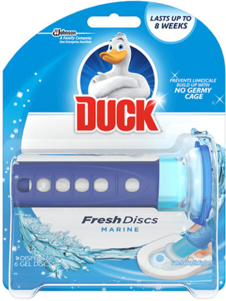 A WC öblítő korong zselés 36 ml Fresh Discs Duck® Marine egy WC-tisztító termék, amely zselés formában kerül forgalomba. A "Marine" jelző arra utal, hogy tengeri illatú, így friss és kellemes légkört teremt a WC környezetében.