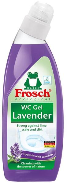 Frosch WC tisztító gél, Levendula Természetes módon és hatékonyan eltávolítja a vízkő-, vizelet- és egyéb szennyeződések lerakódásait. Friss levendula illatot hagy maga után.